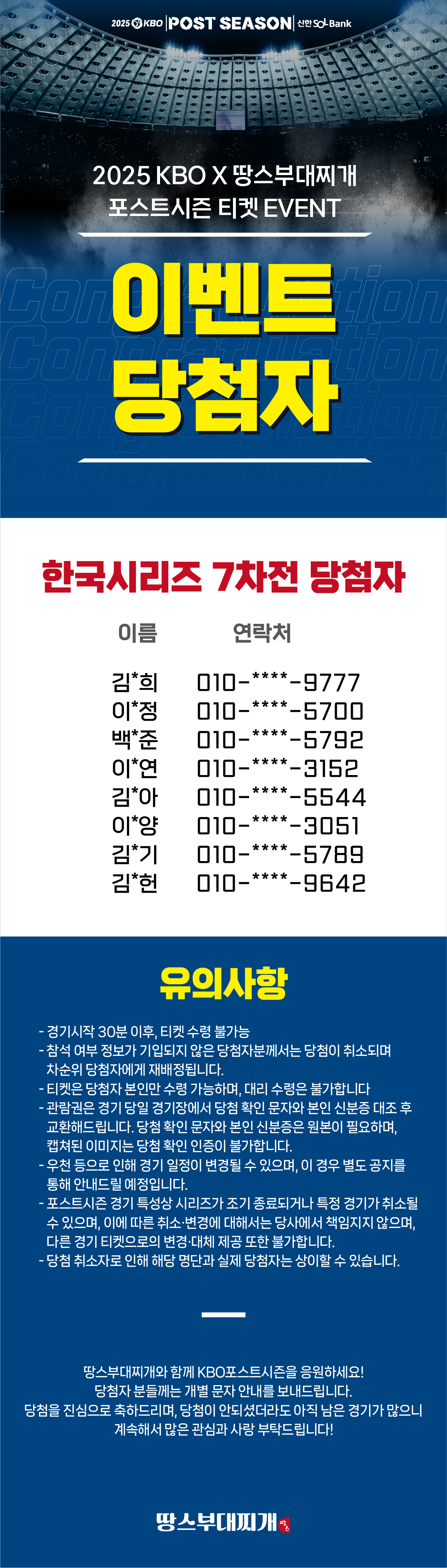 2025 KBO 한국시리즈 7차전 당첨자 발표