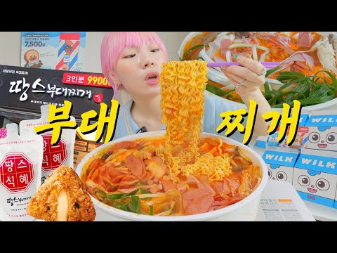 햄가득~ 넣은 땅스부대찌개 먹방! 라면사리,버터간장치즈김밥,참치마요김밥,식혜까쥐..