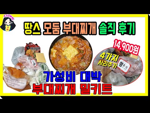 저녁메뉴추천 가성비 대박 땅스부대찌개 오리지널 9900원 4가지 사리 추가 모둠 14900원 밀키트 포장으로 간편하게 요리