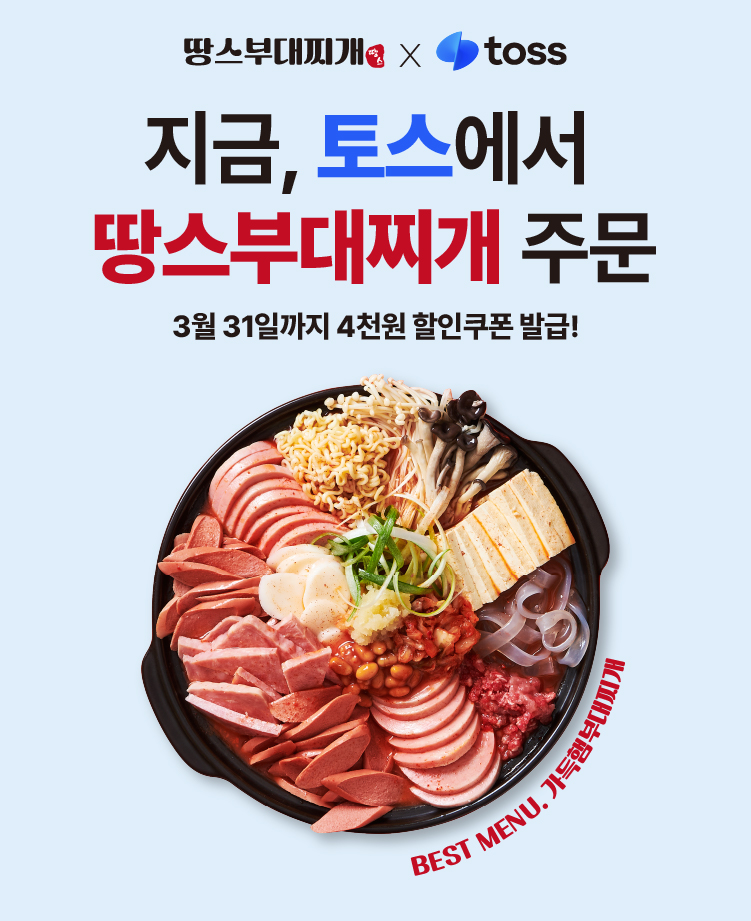 땅스부대찌개, 3월 ‘땅스오더’ 토스 미니앱 입점 프로모션 진행