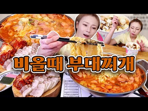 비올때 부대찌개에 햄사리 왕창 넣고 팔팔 끓여서 고기와 맛있게 드시고 뜨거워서 땀나면 후식으로 요거트 아이스크림 어때요?? 20221002/Mukbang, eating show