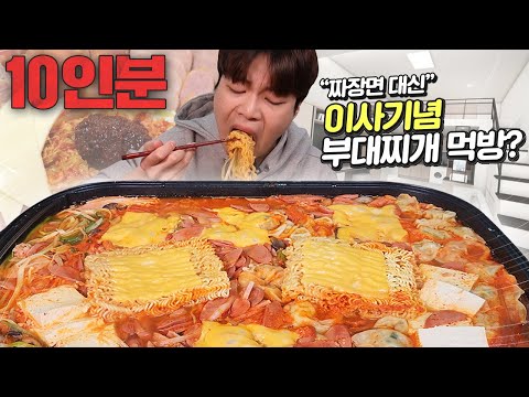 혼자서 부대찌개 토핑 값만 2만원 이상 ㅋㅋㅋㅋㅋ 이사 기념? 짜장면 대신 부대찌개 먹방!